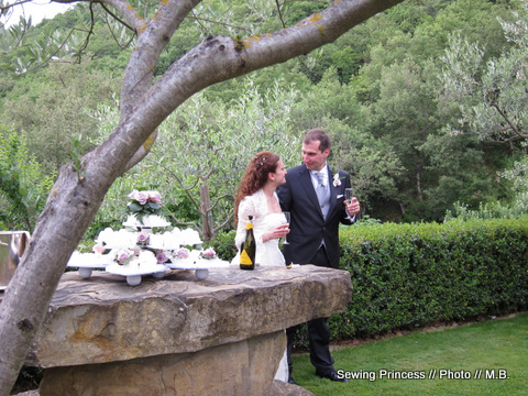I like how the dress turned out and I love the little silk bag. 🙂 The wedding looks beautiful! I want to marry in Italy and have a big party/reception in an olive grove/big Italian garden afterwards… (No kidding, that has been my dream for ages!)