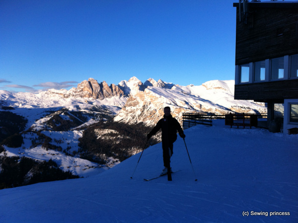 I’ve been skiing a few days in Selva Val Gardena…you can see me here all braced up before taking a lift…I’ve had loads of fun as I managed to improve a bit my technique (the first day is always hard though). The slopes were perfect and there were hardly any people (I hate it when you have to stand in line and watch out for crazy skiers around…I need space 😉