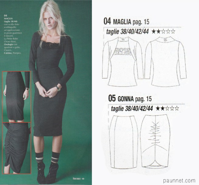 Although the photo in the magazine wasn’t particularly inspiring (it’s very difficult to see detail on black garments), I liked the idea of the yoke and the lace insert on the front. I think it lifts the top from the mundane to something a little special. I also had the brown knit in my stash and it was just the right amount. It was meant to be!