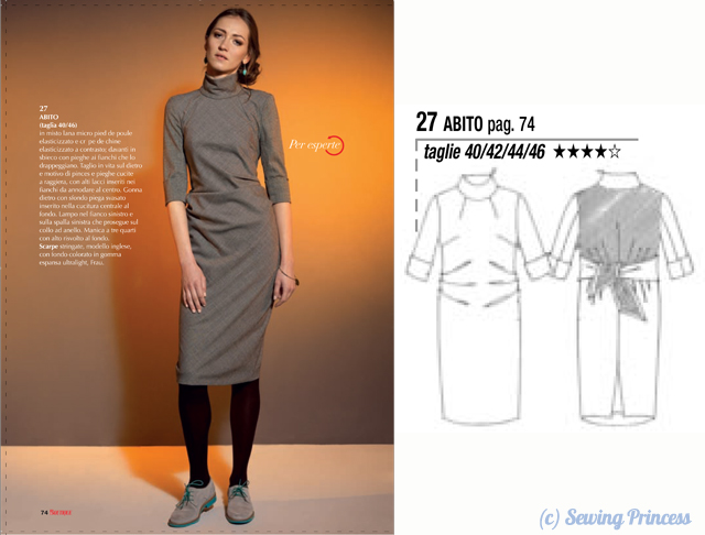 Questo vestito mi piace…tranne per il fatto che è un modello per esperte. Non capisco bene lo scopo della cinta. E sicuramente se lo cucite farete pratica con pieghe e pince. Non so, mi aspettavo un modello più semplice dalla foto.