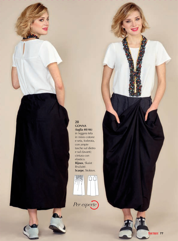 E dopo tante fantasie…ecco un look piu’ sobrio. Se vi piacciono i modelli ampi questa sarebbe una bella gonna. La trovo interessante ma so che non la metterei mai.
