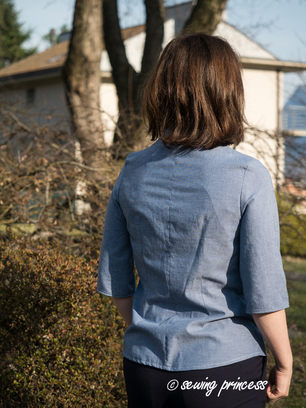Fitting requires time especially if you do it on your own…I’ve learned that fitting is an art and achieving perfection is often very hard…especially on woven fitted garments. Doing it by yourself doesn’t make things easier not to mention I often can’t tell I have a problem unless I make the entire garment…and fabric affects fit too. For example, if you look at the back of this blouse you see some pulling at the back…can you believe this pattern back is exactly the same as my melting pot blouse? Both fabrics are woven without any stretch…I’m still puzzled!