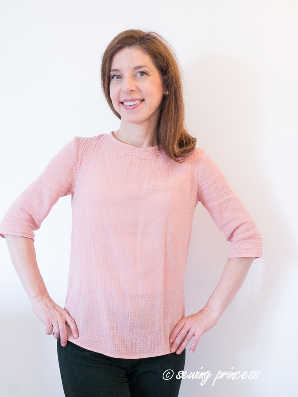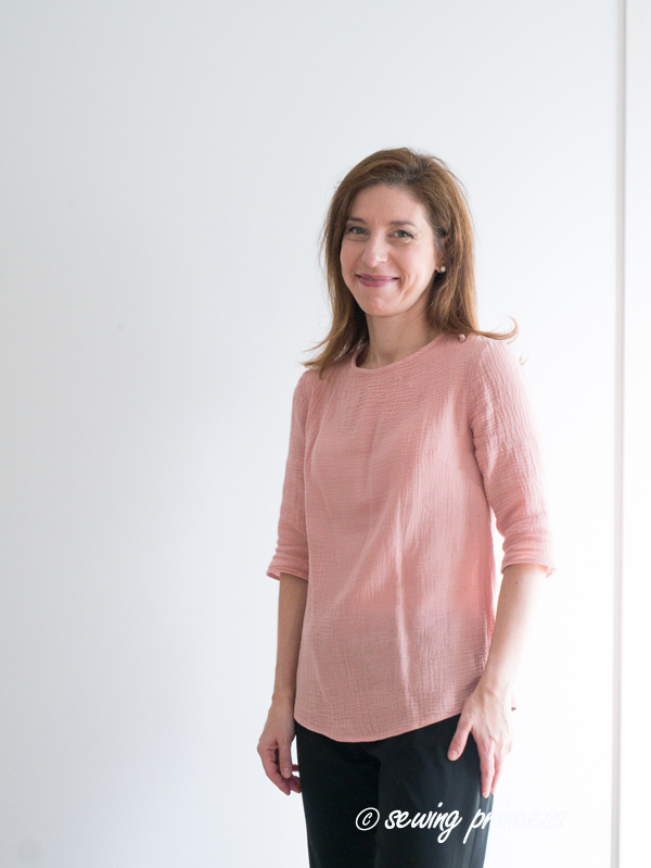I love this new version too and I’m happy I finally made a double gauze garment…it’s such a hyped fabric I was very curious. I must say I’m on the fence about it…I love the drape and finish…but when pierced it looks very fragile (I topstitched the sleeves for durability) and wrinkles like crazy. Have you used double gauze before? What do you think?