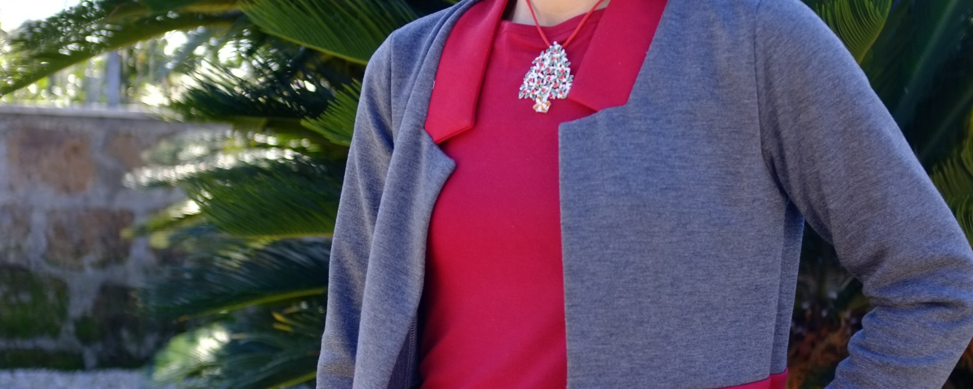 Volendo assolutamente usare tessuti che avevo…ho creato questa versione bicolor… non mi ero resa conto che stavo realizzando una tenuta natalizia perfetta per un Natale comodo…abbinata alla maglietta a barca realizzata sempre con stoffa che avevo!